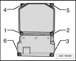 - Ensure control module is centered on hydraulic unit and then install new screws - 1 - and - 2 - evenly (do not tighten) so the gap between control module and hydraulic unit is equal on all sides.