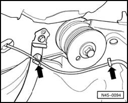 - Unclip ABS wheel speed sensor wiring from the retainers - arrows -.