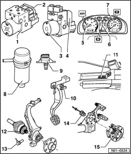 4 - ABS control module J104 for ABS/EDL and ABS/EDL with ASR