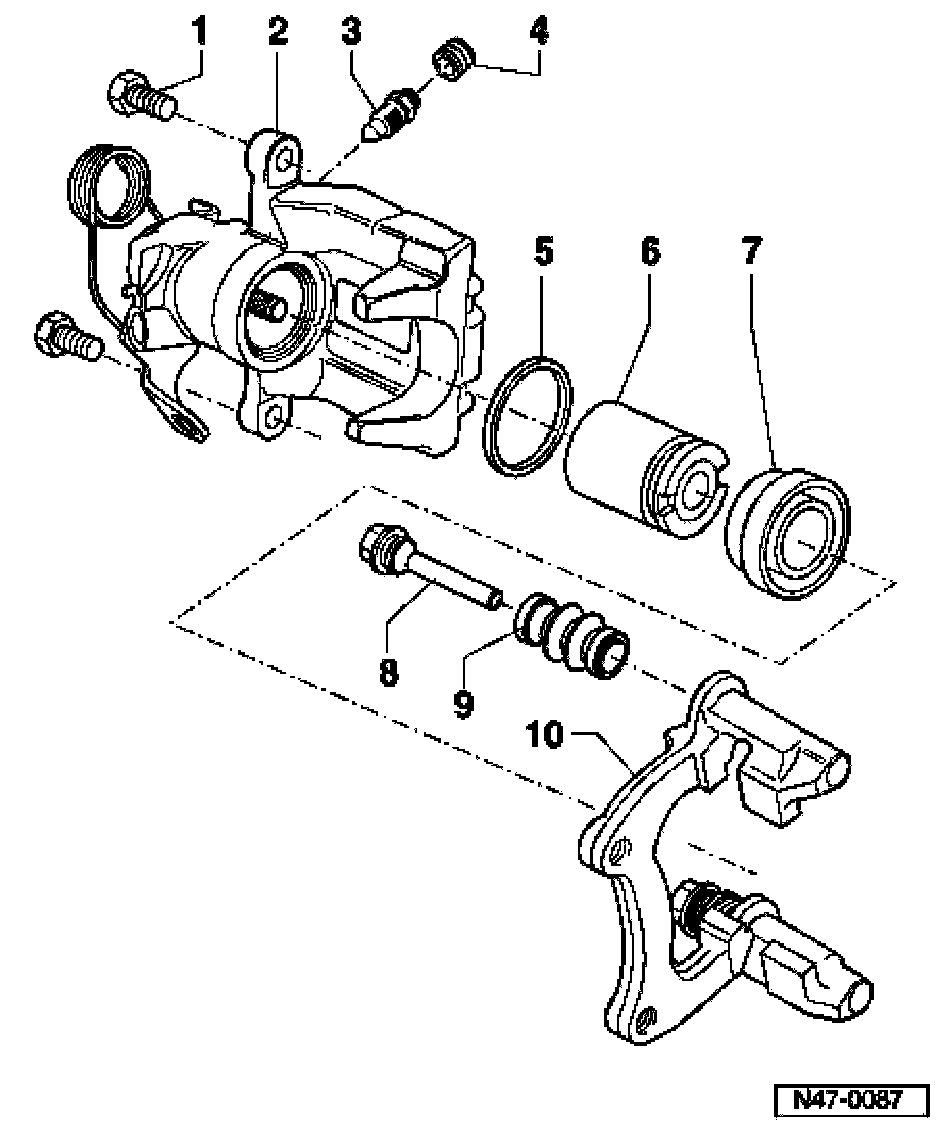 ^ Apply a thin coat of paste G 052 150 A2 to brake cylinders, pistons and seals.