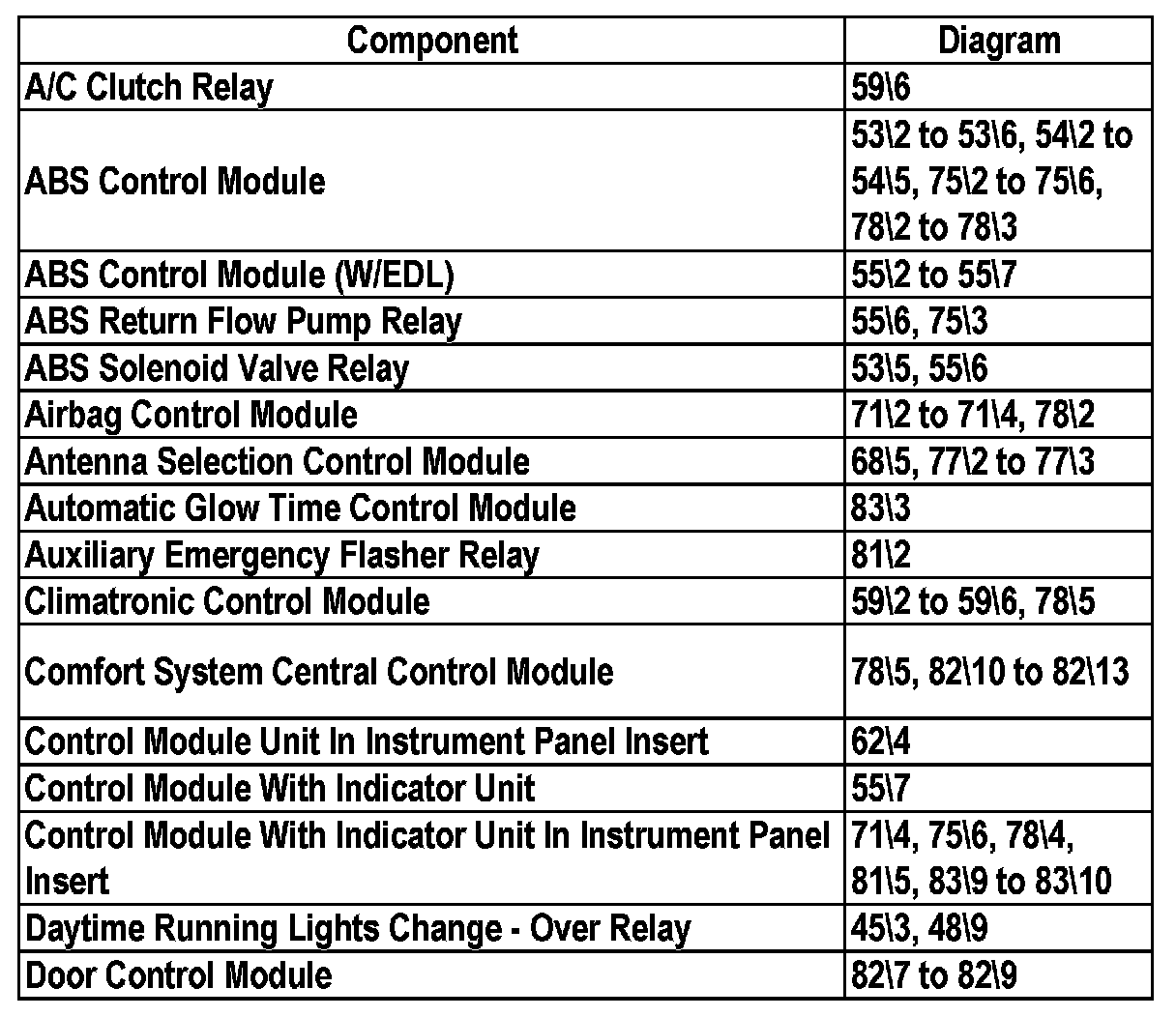 Master Diagram Index