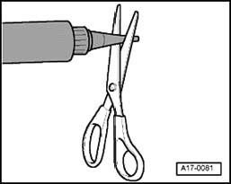- Cut off nozzle on tube of sealant at front mark (diameter of nozzle: approx. 3 mm).