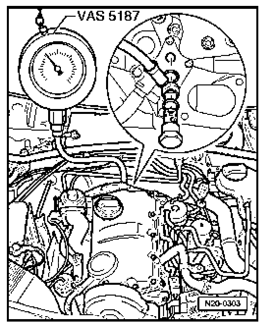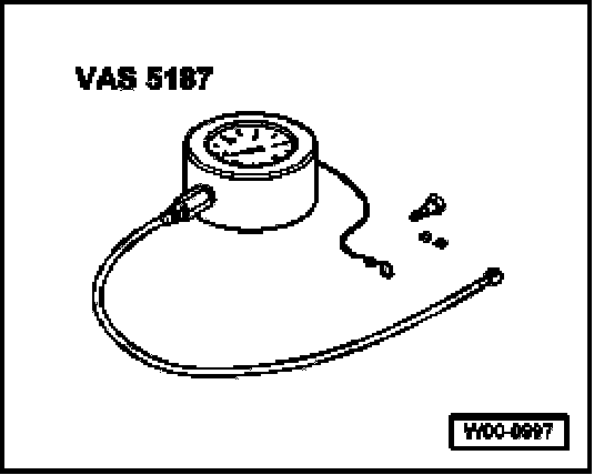 - Install pressure gauge VAS 5187 as shown.