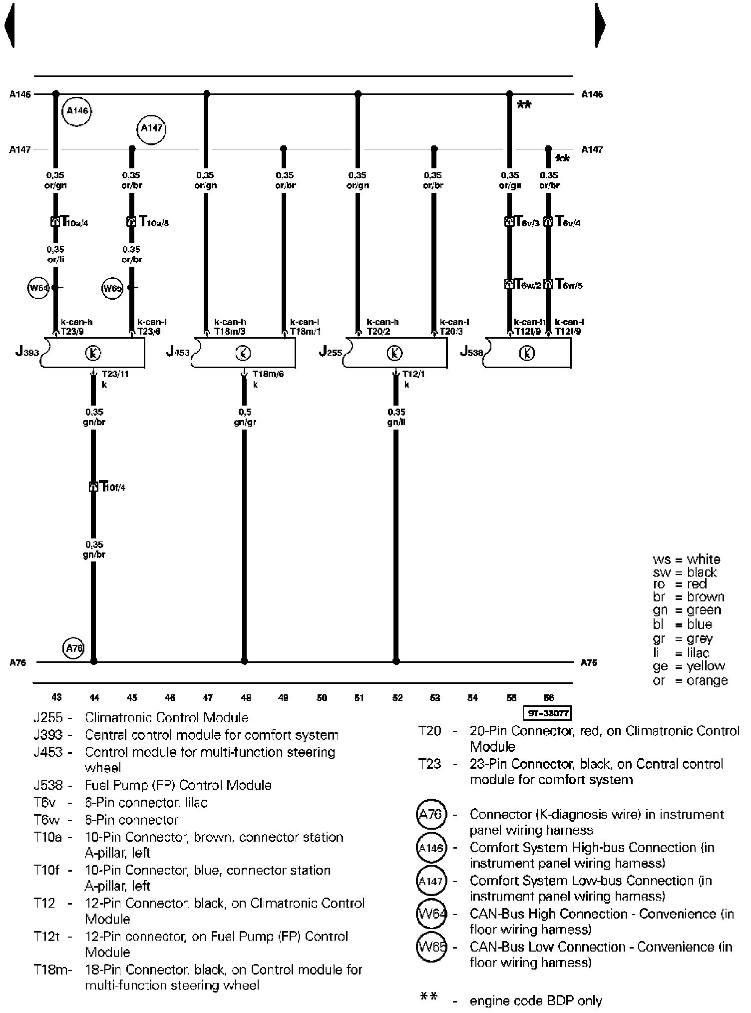 Fuse Identification: Starting with fuse 23, fuses in the fuse holder are identified with an additional numeral 2 added to the number when shown in the wiring diagram (i.e. fuse 23 in the vehicle becomes 223 in the diagrams, fuse 24 becomes 224, and so on).