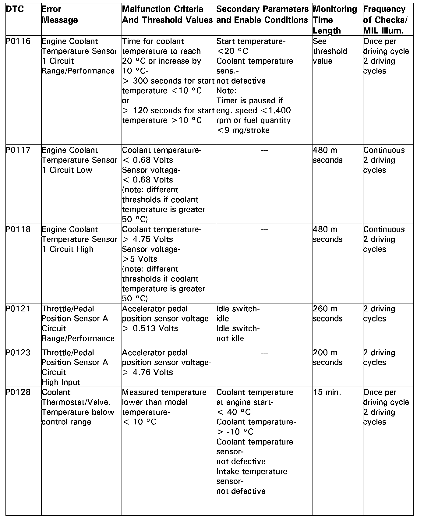DTC P0116 - P0128: