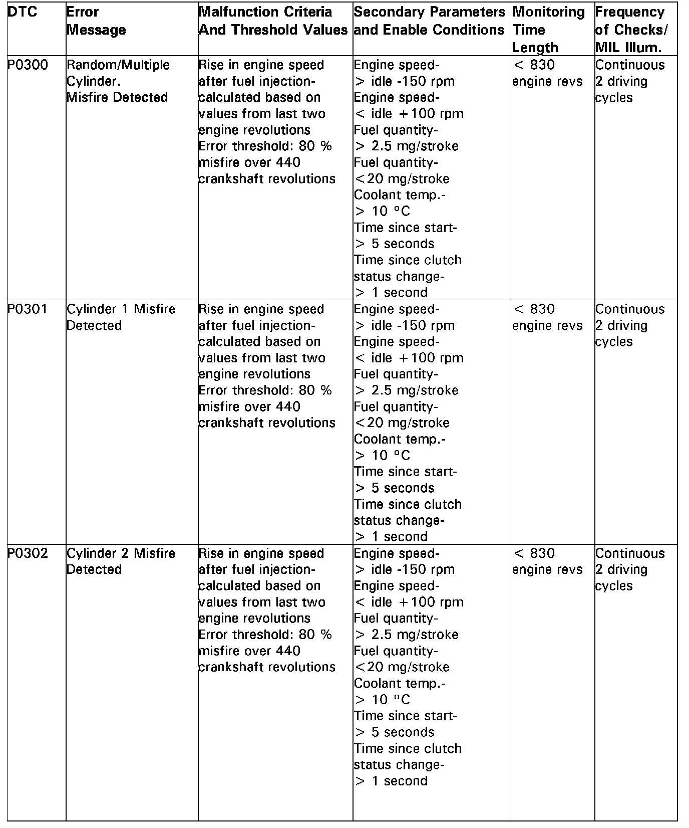 DTC P0300 - P0302: