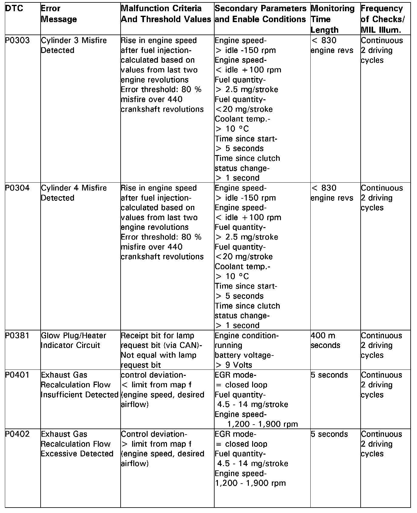 DTC P0303 - P0402:
