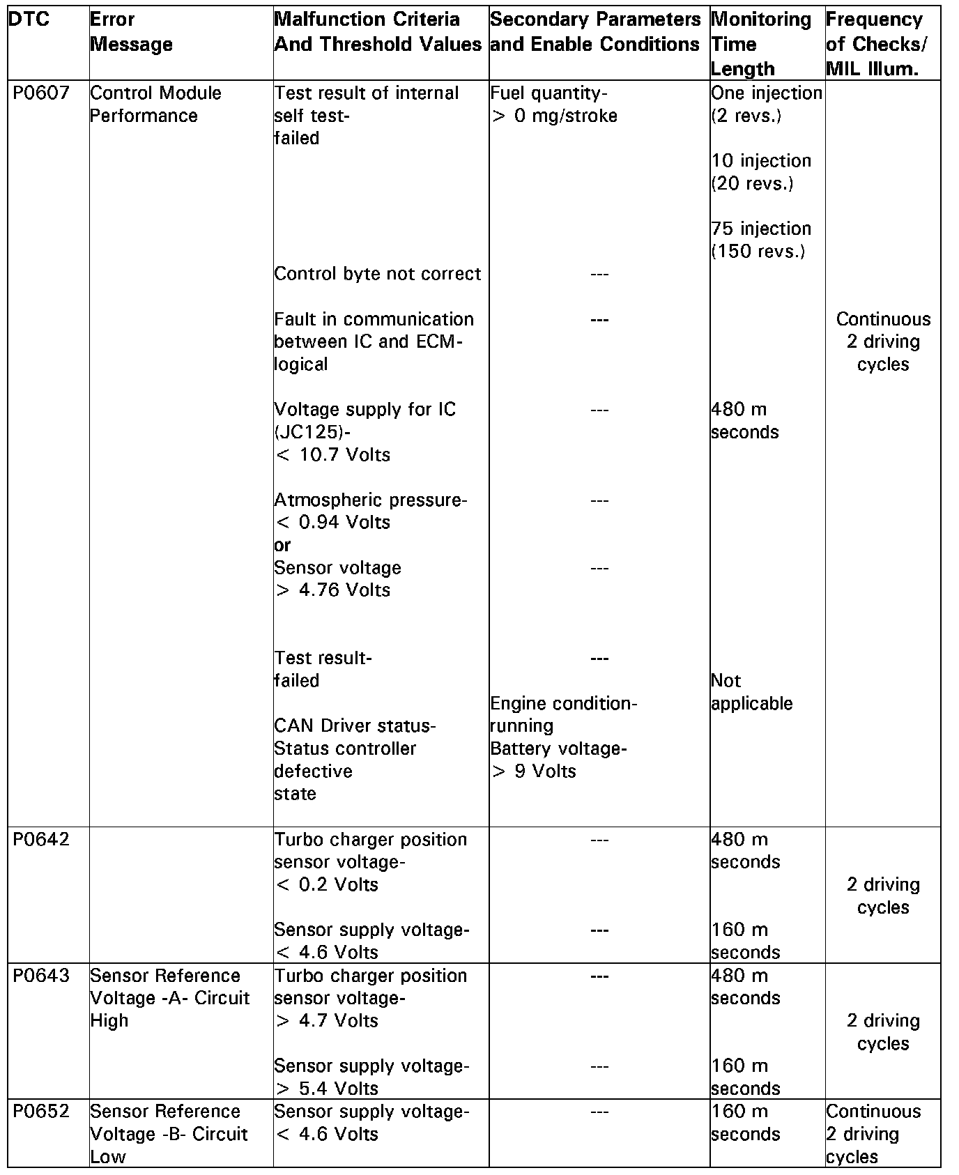 DTC P0607 - P0652: