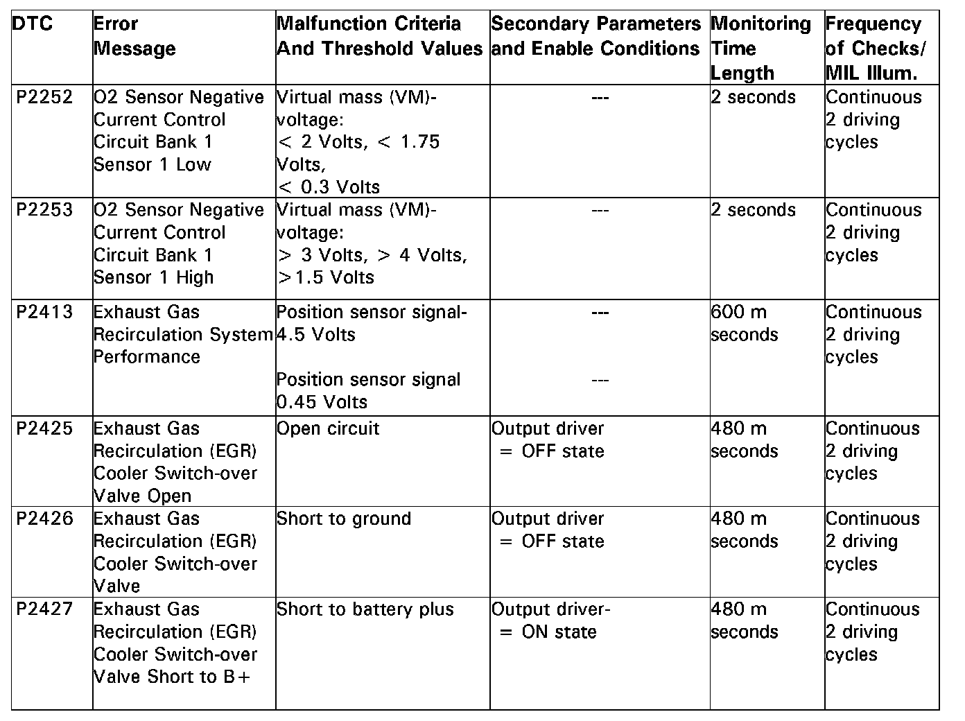 DTC P2252 - P2427:
