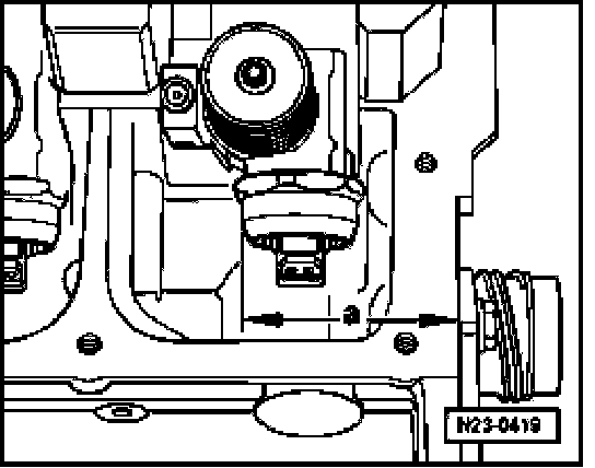 - Using a caliper gauge (measuring range at least 400 mm), check dimension "a" from outer edge of cylinder head to round surface of pump-injector unit.