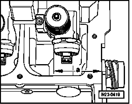 - Using a caliper gauge (measuring range minimum 400 mm), check dimension "a" from outer edge of cylinder head to round surface of Pump-Injector Unit.
