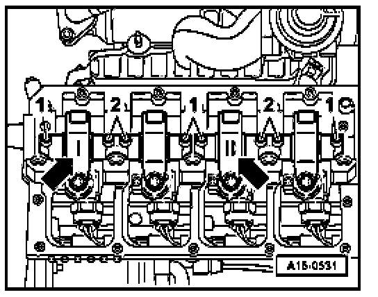 - Rotate crankshaft in direction of engine rotation until rocker arm roller stands at camshaft point.