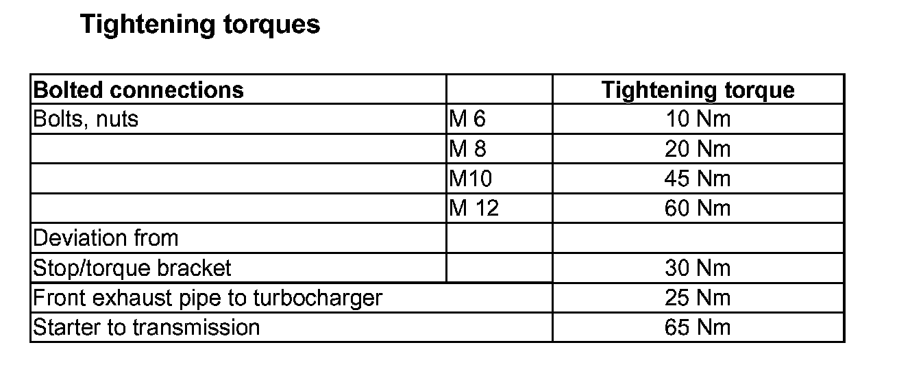 Tightening torques:
