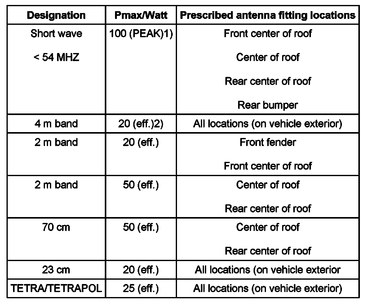NOTE: Deviations from these guidelines (location of antenna, frequency, output) are only permitted in special isolated cases after a single-case test carried out by the EMV center of VW AG in Wolfsburg.