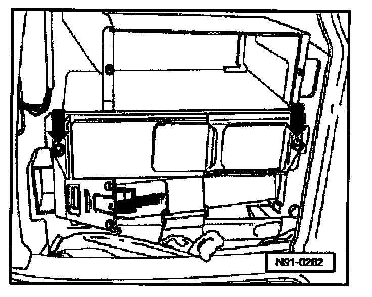 - Remove screws -arrows- and slide CD changer unit from mounting frame.