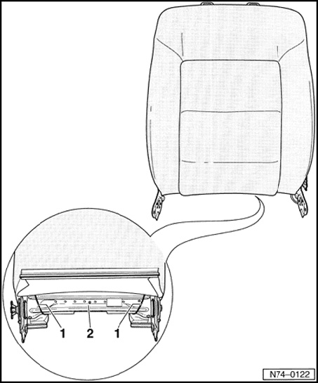 - Before installing backrest cover, check whether two tension wires - 1 - are present.