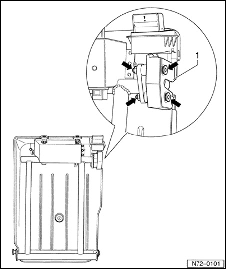 - Loosen bolted connections - arrows - and remove backrest lock - 1 -.