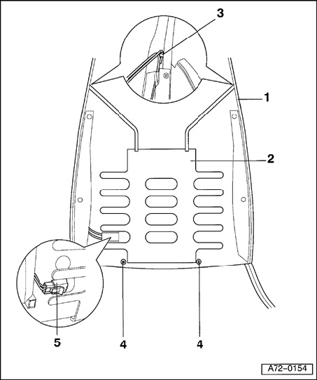 - Disengage retaining clips - 3 - of lumbar support - 2 - from backrest frame - 1 -.