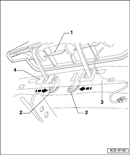 - Using pliers or a screwdriver, push both springs - 2 - inward - arrows -.