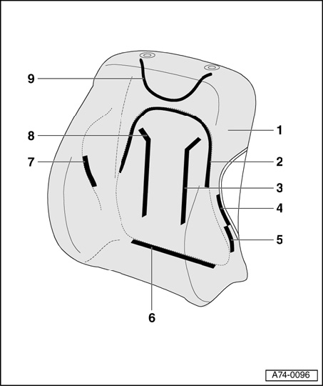 - Disengage backrest profiles - 5 - and - 7 - on both sides.