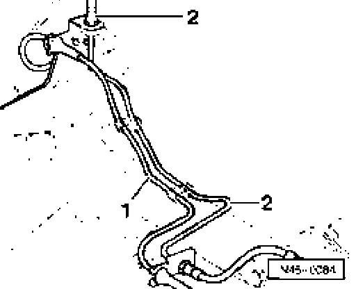 On the right-hand side, ABS wheel speed sensor wiring -1- must be routed between the fuel lines -2-.