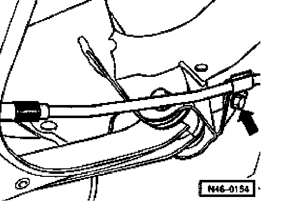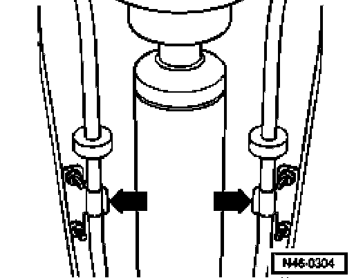 ^ Squeeze plugs together using pliers on parking brake cable and take parking brake cable out through hole in lower control arm -1-.