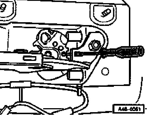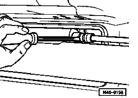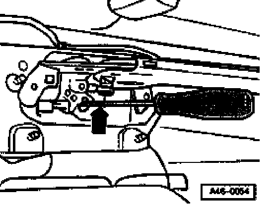 ^ Using a screwdriver press parking brake cable in direction of parking brake lever and push ball out of retainer.