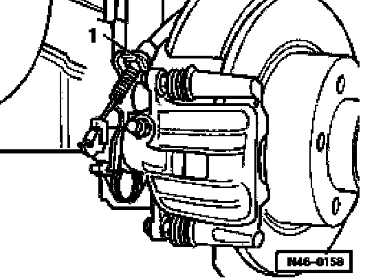 ^ Pull out securing clip -1- and unhook parking brake cable from brake caliper.