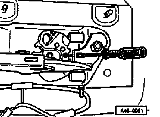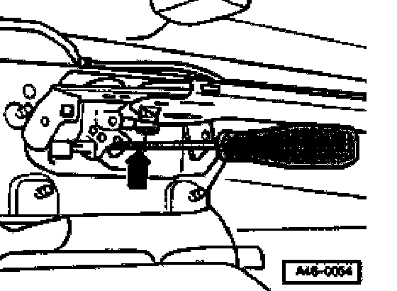 ^ Using a screwdriver press parking brake cable in direction of parking brake lever and push ball out of retainer.