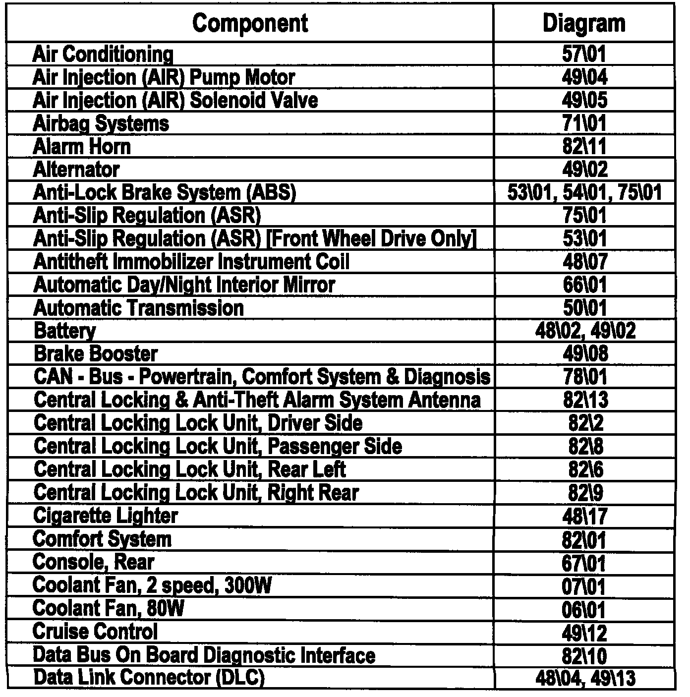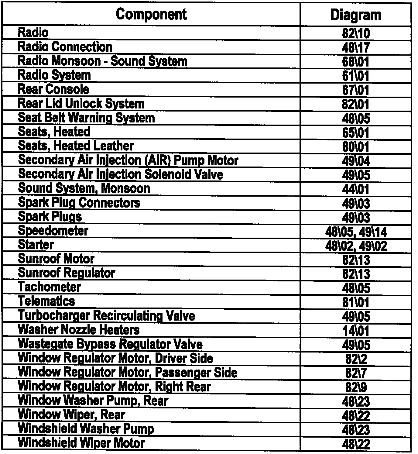 Master Diagram Index