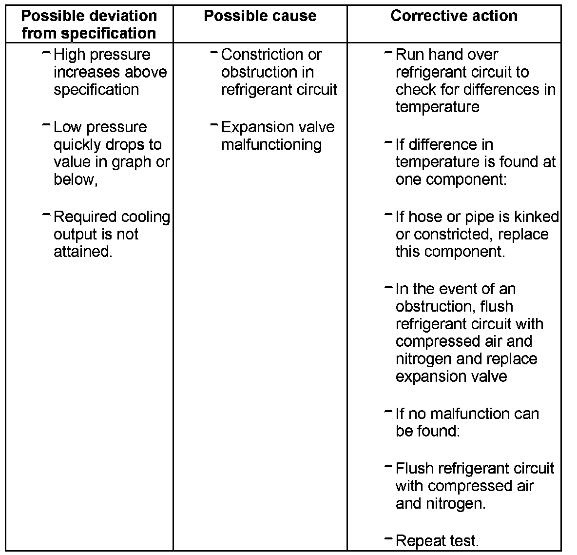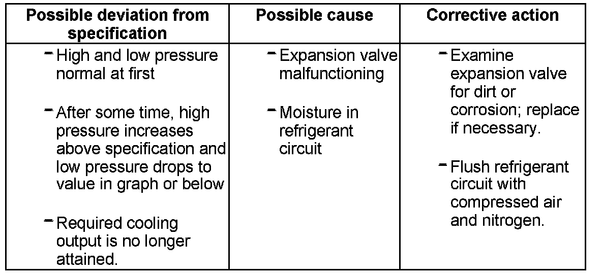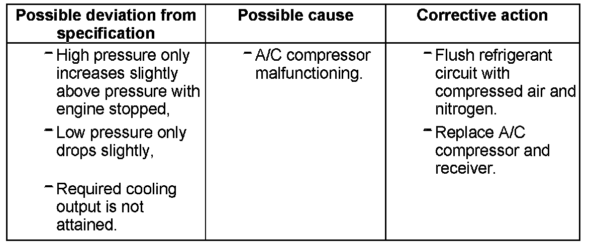 - If the function of the air conditioning system is not OK when the test is repeated, reinstall old expansion valve and flush refrigerant circuit with compressed air and nitrogen. Then replace A/C compressor and receiver.