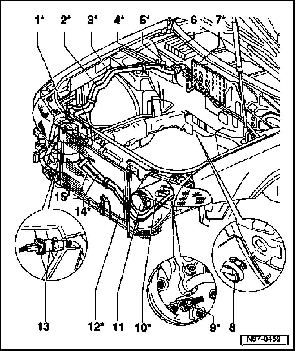 - System components identified with * must only be serviced or replaced after discharging refrigerant system. Use Kent Moore ACR4 or equivalent.