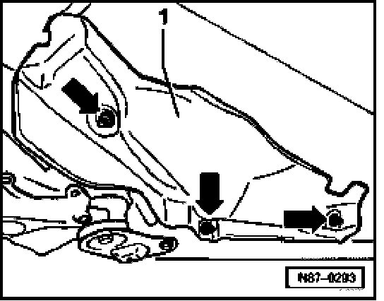 - Remove nuts -arrows- on right catalytic converter heat shield -1-