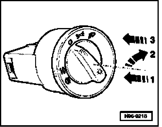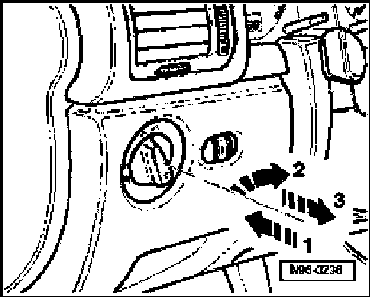 - Push switch inwards -arrow 1- and turn slightly to right -arrow 2-