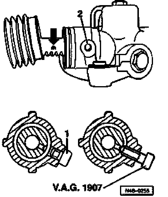 - Seal steering gear with hex socket head bolt -1-; tightening torque, Refer to Power Steering Gear, Disassembling and Assembling, See item 9 and, Refer to Power Steering Gear For Vehicles With 5, 6 or 8-Cylinder Engine, Disassembling and Assembling, See - item 19.