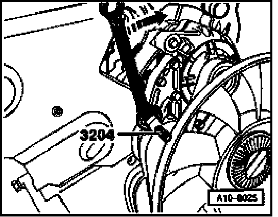 - Turn tensioner with wrench in direction of -arrow- and lock tensioner with pin 3204.
