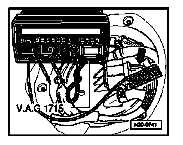 - Connect Multimeter V.A.G 1715 to wire of 4-pin connector terminal 1 - arrow - using current pick-up.