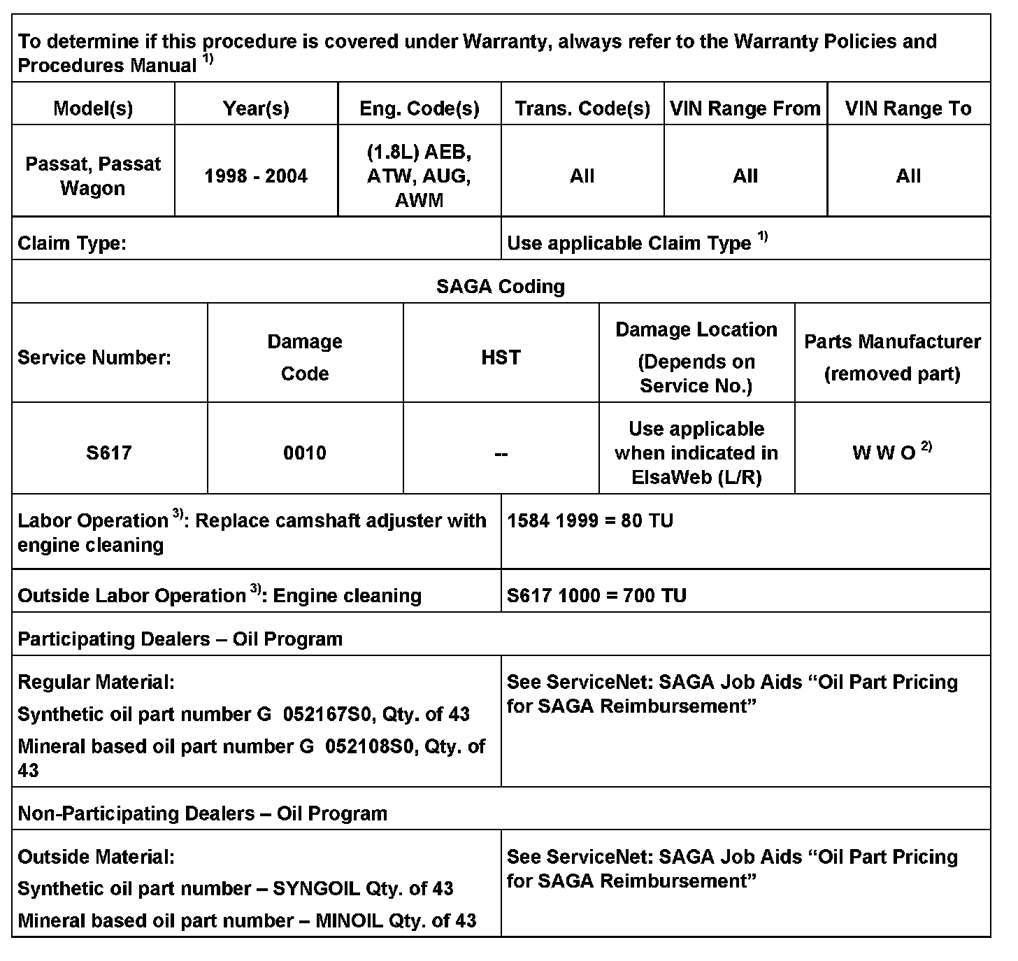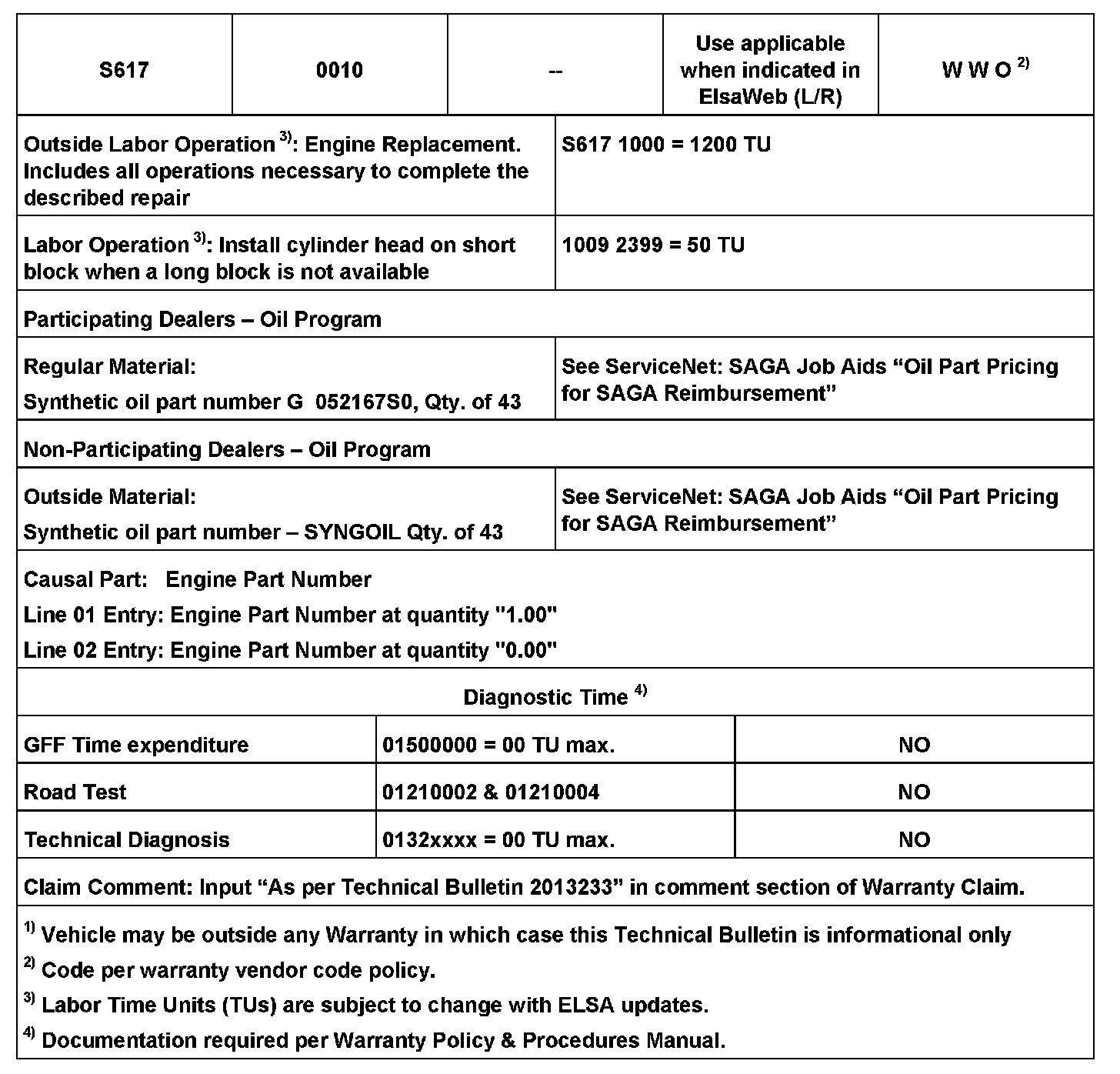2013233 Supersedes T.B. Group 17 number 10-01 dated Jan. 6, 2010 to clarify how to claim materials in SAGA and update SAGA Job Aid reference in the warranty table.