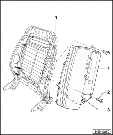 - Remove backrest frame and loosen backrest cover in area of airbag --.