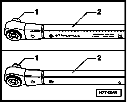 - Turn torque wrench grip -2- through 180 degrees and reinsert socket drive.