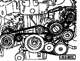 Removing ribbed V-belt on vehicles with 4-cyl. diesel engine