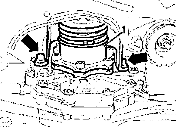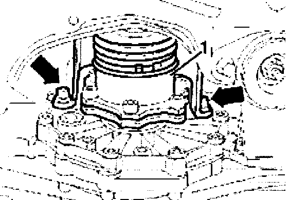 - Remove flange shaft bolt -arrow- (use pin to prevent flange turning).
