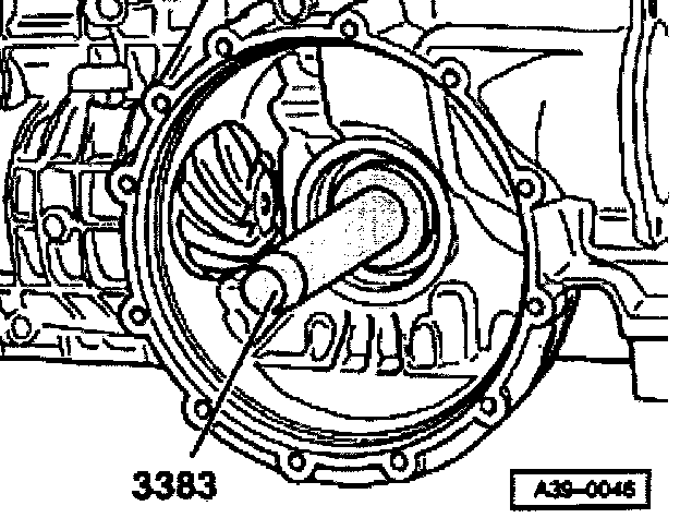 - Push seal onto press piece 3383 with the protruding sealing lip on the seal -arrow- facing toward the tool.