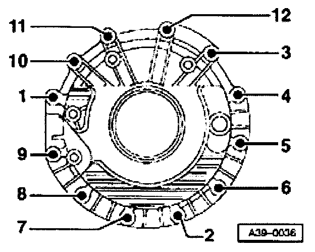 - Stage 2: tighten bolts -1- to -12- to specified torque in the sequence indicated.
