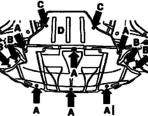 ^ For vehicles with noise insulation - D -, remove bolts - arrows C -.