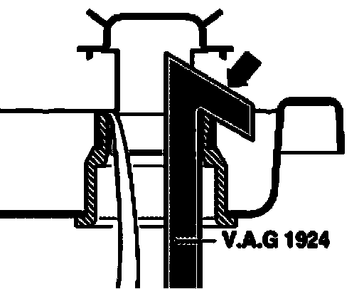 ^ Add ATF using ATF filler tool V.A.G1924 - arrow - until ATF exits from the check hole.
