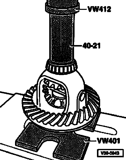 ^ Drive the axle for differential bevel gears into final position and secure.