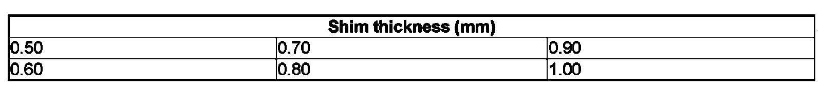 Table of adjustment shims