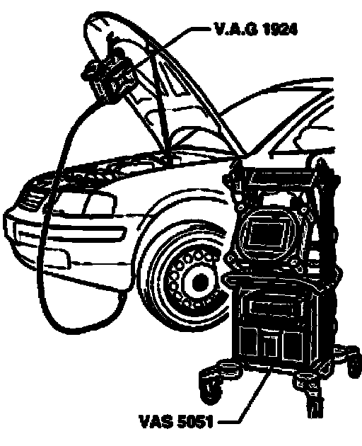 - With ignition switched off, connect tester VAS 5051 to diagnosis connection using diagnosis cable VAS 5051/1 or VAS 5051/3.
