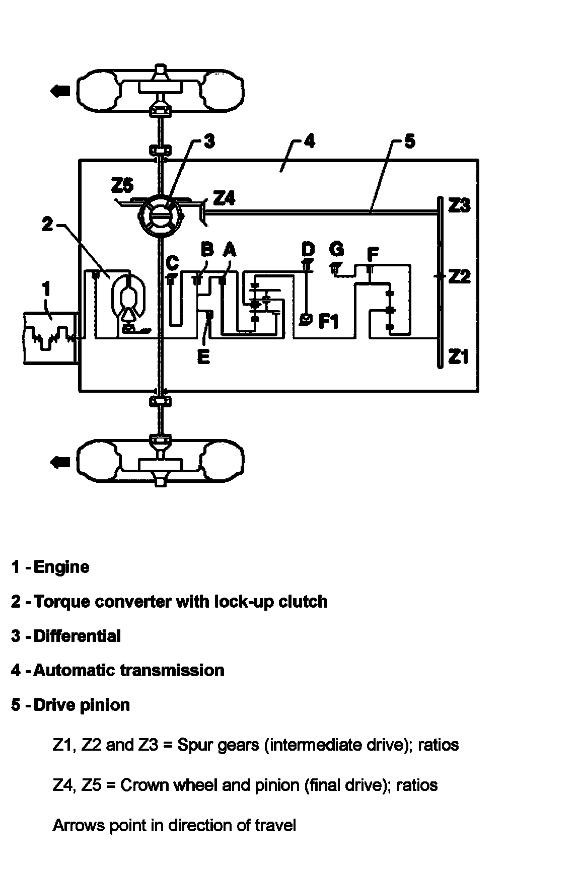 Z4, Z5 = Crown wheel and pinion (final drive); ratios